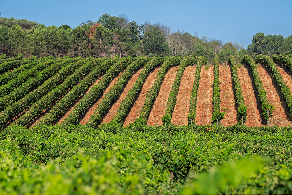 - On steeper slopes (40–60%), terraced planting with a single row of vines
