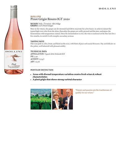 Pinot Grigio Rosato IGT 2019 Fact Sheet