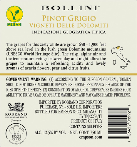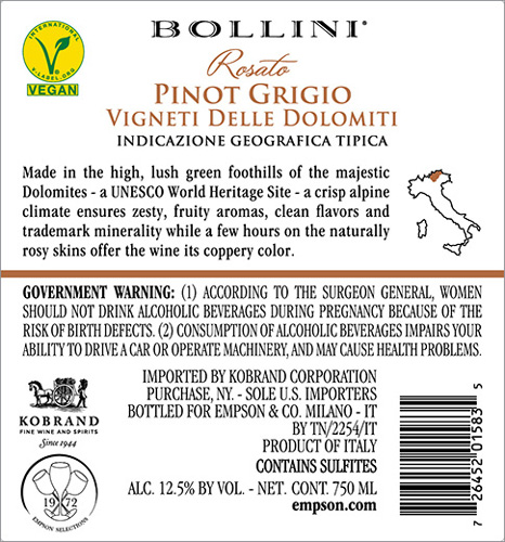 Pinot Grigio Rosato IGT Back Label (vegan)