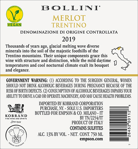 Merlot Trentino DOC 2019 Back Label (vegan)