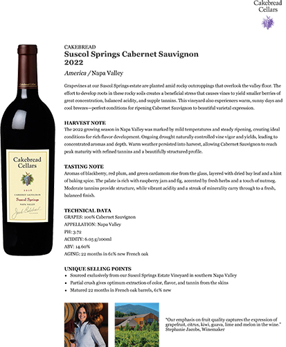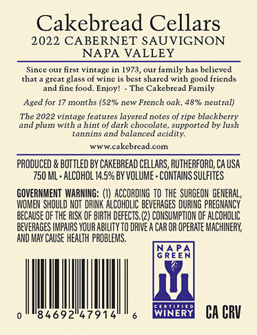 Napa Valley Cabernet Sauvignon 2022 Back Label