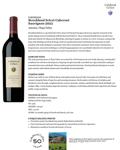 Cakebread Benchland Select Cabernet 2021 – 92 Points