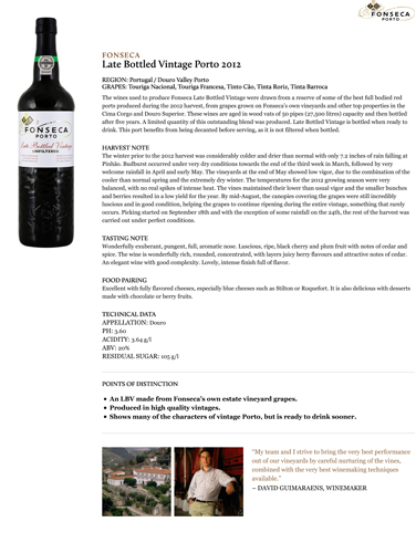 Late Bottled Vintage Porto 2018 Fact Sheet