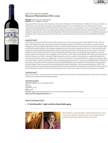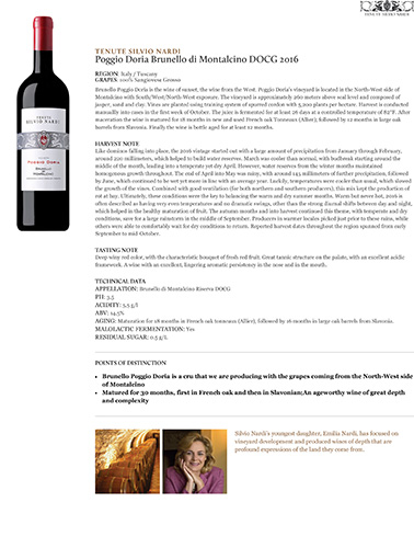 Poggio Doria Brunello di Montalcino DOCG 2019 Fact Sheet