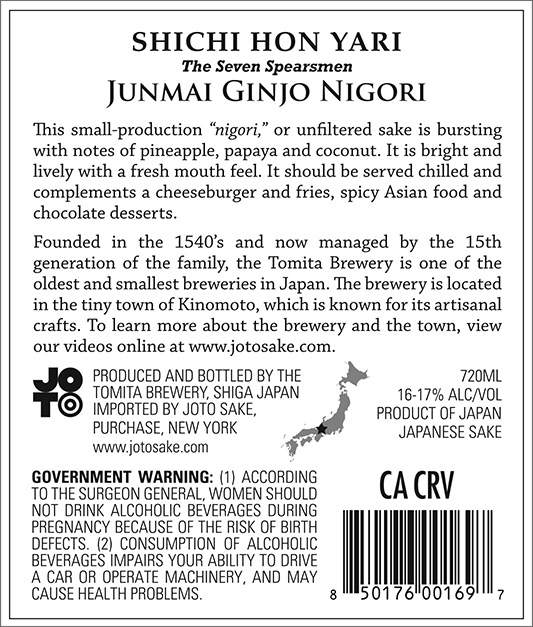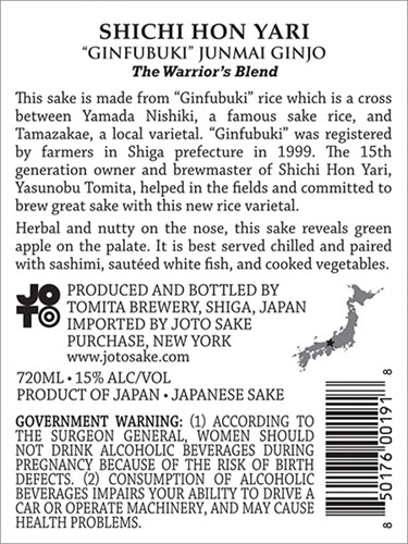 Junmai Ginjo Ginfubuki “The Warrior’s Blend” Back Label (720ml)